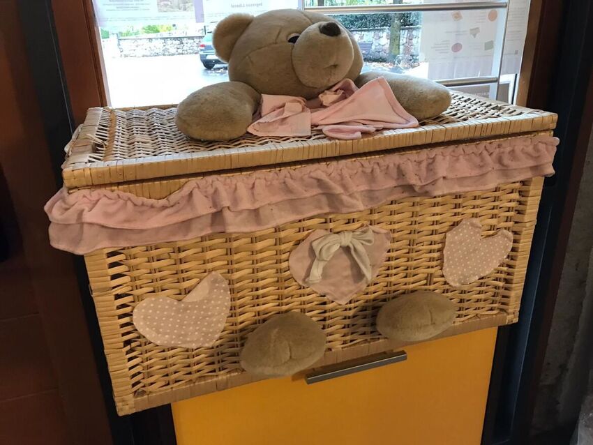 cesta in vimini e peluche